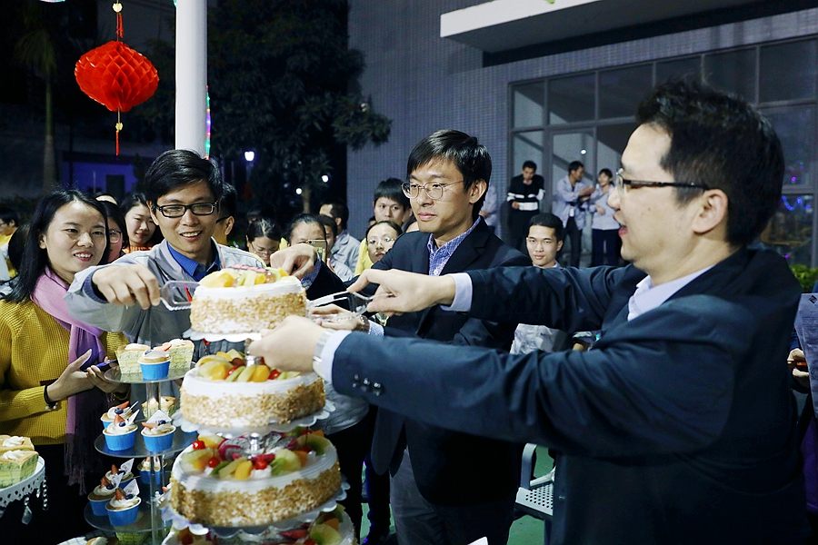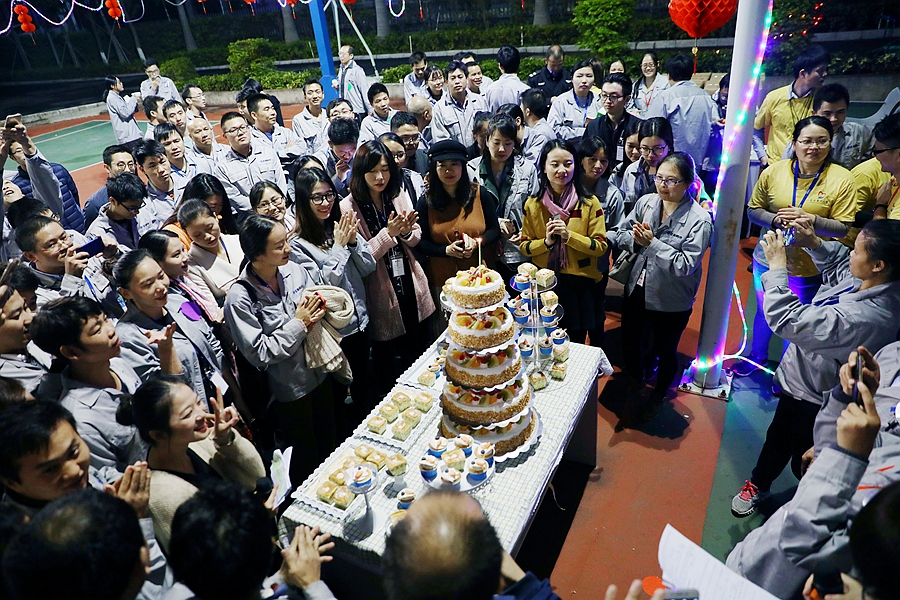 正業(yè)科技二十周年系列活動——“歡聚一堂,共慶雙旦”暨第四季職工生日會于2017年12月28日晚上在公司籃球場隆重舉行,技術(shù)中心總監(jiān)梅領(lǐng)亮、市場中心總監(jiān)徐同、董事會秘書王巍、管理中心總監(jiān)黃洪輝、人力資源總監(jiān)嚴敏升與正業(yè)科技總部500多名員工一起,共同歡度了這個開心難忘的夜晚。